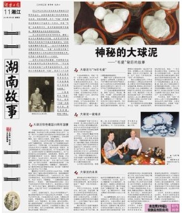 《湖南日?qǐng)?bào)》2013年1月18日版登載《神秘大球泥—“毛瓷”背后的故事》