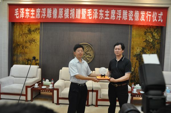8月1日,湖南大球泥瓷藝有限公司捐贈的捐贈張松鶴1965年創(chuàng)作的毛澤東主席浮雕像原模