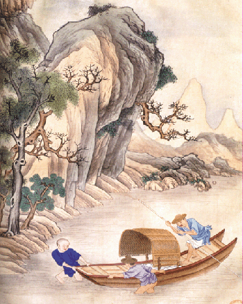 設計→脫稿→整理→復稿→磨墨→勾線→調色→分水→點染→皴擦→勾花筋→點花芯→畫鳥(蟲草)→加底標→清色→下位