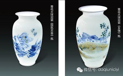 一曲《青花瓷》帶我們領(lǐng)略了整個(gè)畫面,大球泥瓷配青花果然耳目一新,眼前一亮,讓人愛不釋手。天青色,是瓷器中最珍貴的一種顏色。因?yàn)橐篃频拇蔀榍嗷ㄉ瑐髡f需得在煙雨天氣中燒制,才能使釉色呈現(xiàn)“雨過天青云破處”般的色彩。后世有之形容為“細(xì)紋如擬冰之裂,在玉壺中可並肩”。這批由中國景德鎮(zhèn)工藝美術(shù)大師喻木華到湖南大球泥瓷藝有限公司現(xiàn)場創(chuàng)作的青花大球泥瓷給我們帶來了不一樣的美感和享受,我們堅(jiān)信:大球泥瓷與青花的結(jié)合迎來的不僅僅只是一曲《青花瓷》,這只是一個(gè)開始,我們更期待一支完美的華爾茲!!