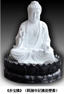 該《多寶佛》(釋迦牟尼佛瓷塑像)以臺灣佛光山佛陀紀(jì)念館中釋迦牟尼佛像為原型,以大球泥為原料,吸收我國傳統(tǒng)佛塑像優(yōu)點(diǎn),用醴陵高溫?zé)萍挤,由一位工藝美術(shù)大師和陶瓷藝術(shù)大師聯(lián)袂創(chuàng)作。其中001號已于今年5月30日捐贈給了臺灣佛光山開山宗長星云大師!