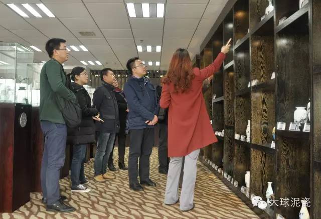 在副總張萍的陪同下,二十多位來自不同行業(yè)的精英們參觀了展廳的作品,并仔細(xì)詢問了大球泥原料的形成、發(fā)現(xiàn)、開采和利用。