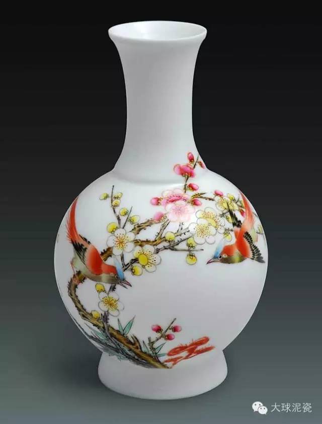 3、大球泥瓷琺瑯彩綜合了景德鎮(zhèn)的創(chuàng)作方法與醴陵的燒制技藝,邀請知名工藝美術大師創(chuàng)作,成瓷更加溫潤通透,色彩對比更加鮮艷奪目。