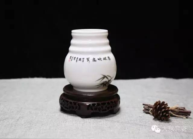 今日大球泥瓷藝推出的這款作品,由省級(jí)工藝美術(shù)大師黃永平創(chuàng)作。以竹為題材作畫,名為《高節(jié)》,并在背面題寫了“蕙風(fēng)吹高節(jié)”五字。顧名思義,是取竹“節(jié)節(jié)高”的美好寓意,象征步步高升。