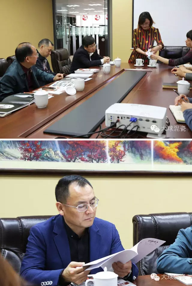 楊部長一行首先來到展示廳,仔細(xì)聽取了公司副總經(jīng)理張萍對大球泥原料的形成、發(fā)現(xiàn)、存量以及大球泥瓷特點(diǎn)的介紹,并對大球泥瓷的經(jīng)典作品逐一進(jìn)行了講解。在會議室,公司董事長滕召華從大球泥原料的搶救性保護(hù)、公司的成立、研發(fā)利用、專利技術(shù)、宣傳推廣、未來規(guī)劃以及需要解決研發(fā)中心用地問題等幾個方面做了匯報(bào)。