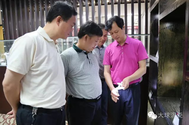 7月14日,湖南省商務(wù)廳副廳長、省異地商會聯(lián)席會議召集人毛七星、省異地商會聯(lián)合會執(zhí)行會長兼秘書長陳煒、常務(wù)副會長劉浪等一行來大球泥瓷藝考察。