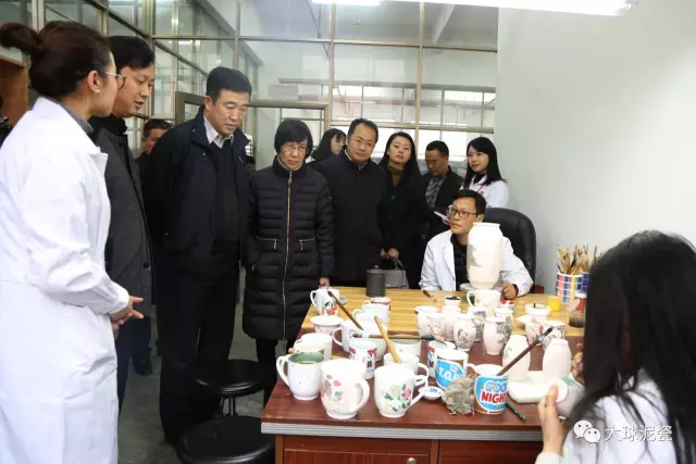 耿焱教授一行受到公司董事長(zhǎng)滕召華的熱情歡迎,先后隨引一一參觀了大球泥瓷大師原創(chuàng)工作室、瓷雕創(chuàng)作室、大球泥煉制區(qū)、質(zhì)量檢驗(yàn)區(qū)、精品展廳等,并詳細(xì)了解了公司的特色原料及研發(fā)、創(chuàng)作情況。