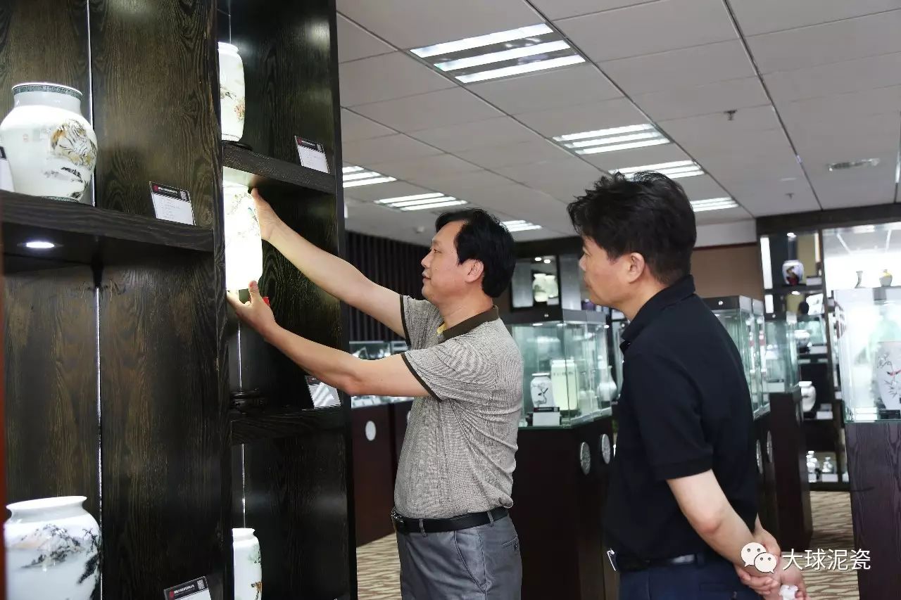 參觀考察后,邱主任認(rèn)為大球泥瓷極具傳統(tǒng)的湖湘文化特色,又非常符合國(guó)家“一帶一路”發(fā)展規(guī)劃,可作為具有地方特色代表性文創(chuàng)作品走出國(guó)門,邁向世界。滕董表示大球泥瓷正朝著國(guó)際化發(fā)展而努力,今年6月份公司作品已在芬蘭展出,并獲得一致好評(píng)。另一原創(chuàng)作品《和平》套具即將在9月份作為聯(lián)合國(guó)禮品走向國(guó)際。