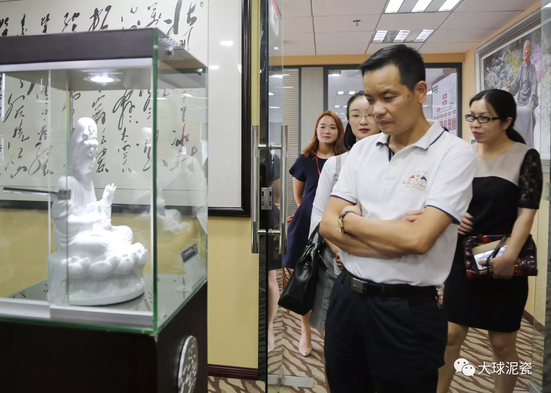 肖部長一行在滕董的陪同下參觀了大球泥瓷精品展廳,仔細(xì)聽取了工作人員對大球泥原料保護(hù)性收藏、創(chuàng)新創(chuàng)意研發(fā),以及大球泥瓷在佛教系列、紅色系列、高端藝術(shù)收藏品、生活用瓷等作品的特點(diǎn)介紹。