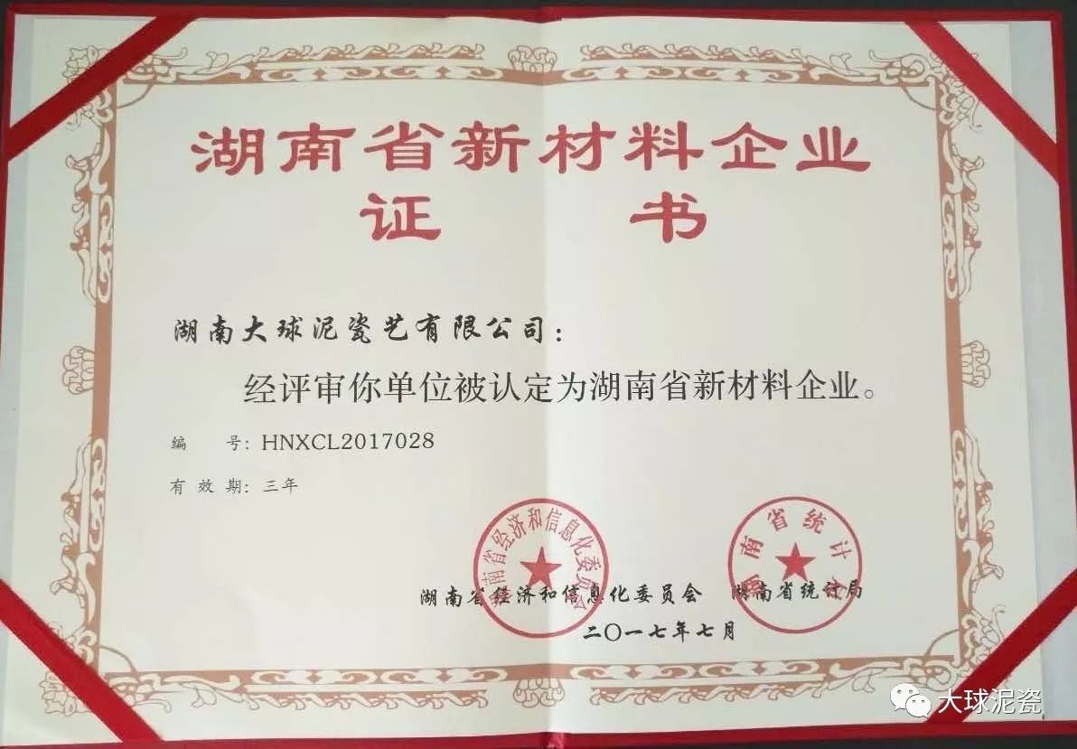 大球泥瓷藝公司的核心競爭力是擁有世界上已枯竭、僅存下來的一批陶瓷原料——大球泥及專有技術。公司是國家高新技術企業(yè)、國家特色文化產(chǎn)業(yè)重點項目、省特色文化產(chǎn)業(yè)示范基地,此次榮獲“湖南省新材料企業(yè)”榮譽稱號更是實至名歸。在新材料上研發(fā)、保護等方面取得了顯著的成就,為湖南的藝術陶瓷發(fā)展,貢獻了自己的一分殷實力量。
