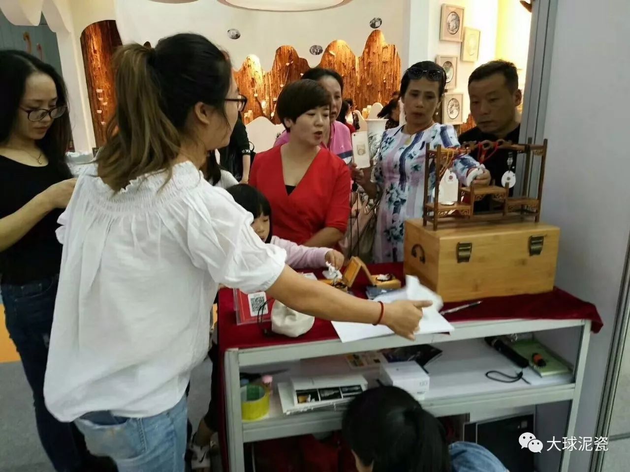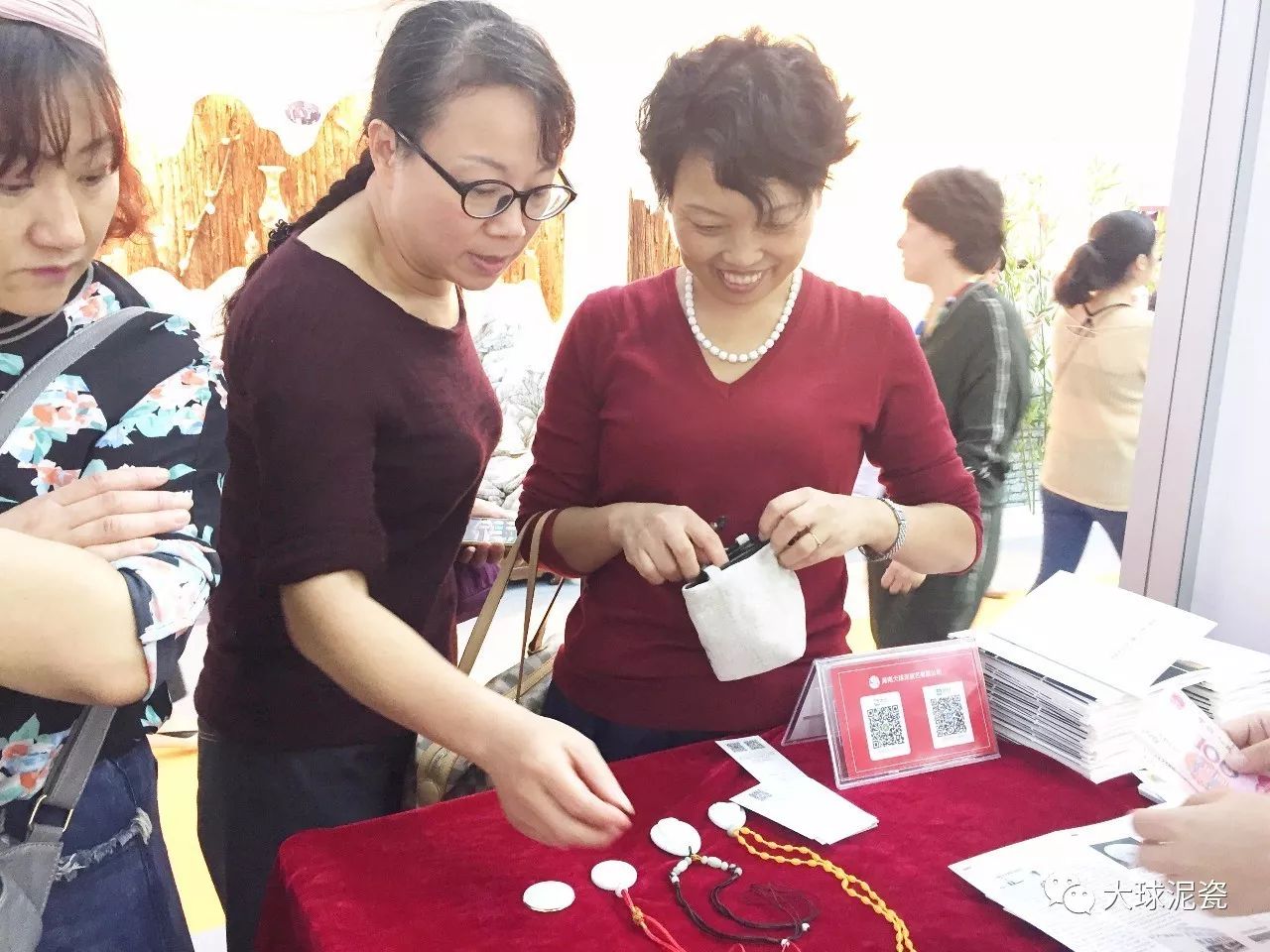 瓷博會上,大球泥瓷藝展出了一百多件高端藝術瓷,件件瓷器耀眼通透,凈白如玉,獲得了現(xiàn)場來賓的一致好評!《毛澤東主席浮雕瓷像》、《彌勒佛》、《吉祥》、《幻影之舞》吊墜等小件禮品受到了觀展人員的熱捧,紛紛爭先購買。