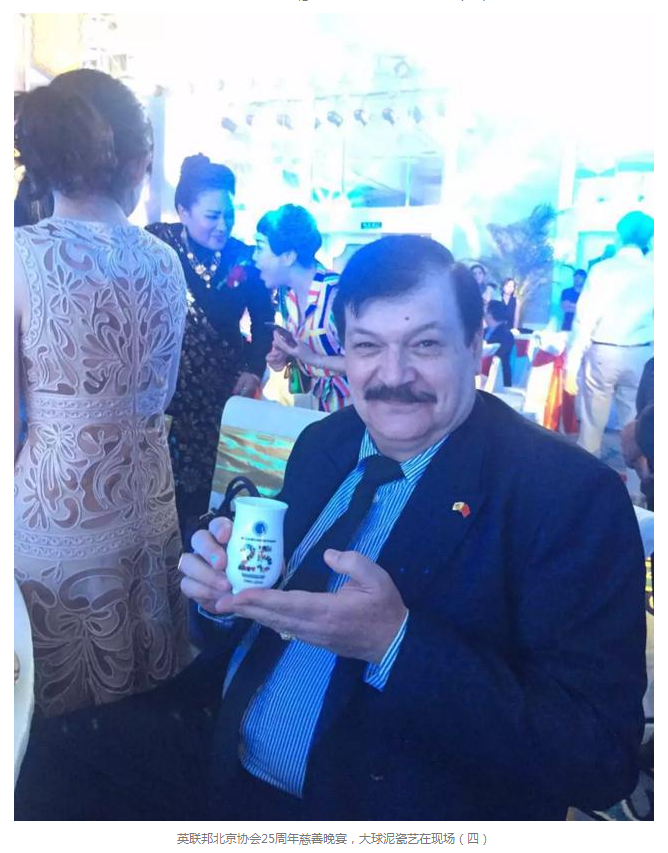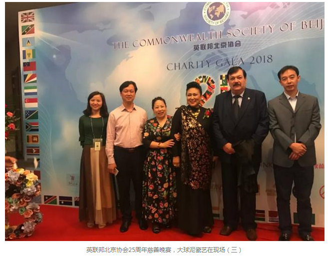 6月9日晚,英聯(lián)邦北京協(xié)會(huì)25周年慈善晚宴在中國大飯店舉行。英聯(lián)邦成員國駐華大使及夫人、國際友人及愛心企業(yè)共600余人參加,大球泥瓷藝董事長滕召華受邀出席。
