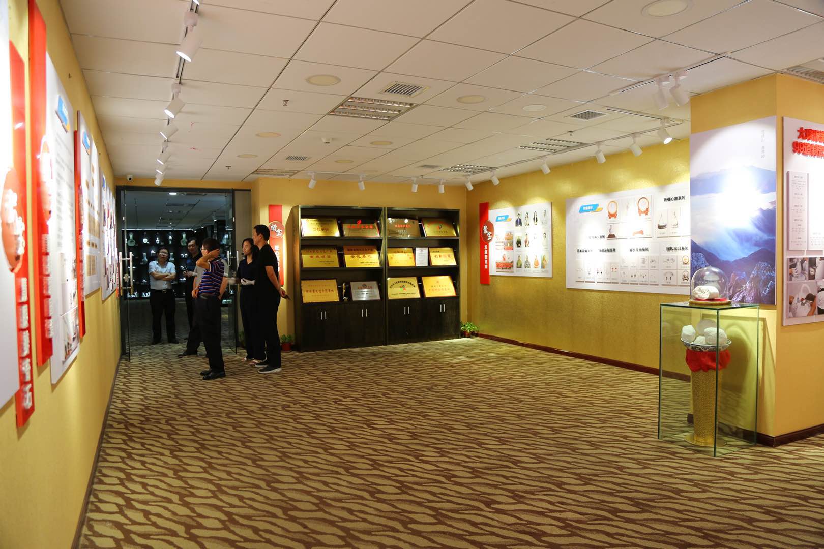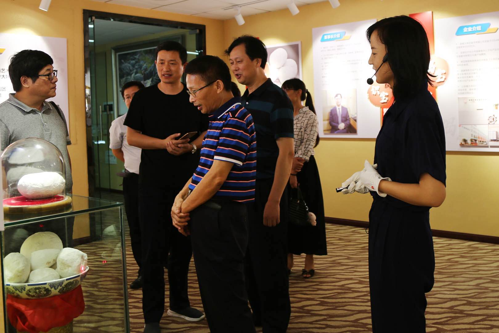 在滕召華董事長的陪同下,考察團(tuán)一行首先參觀了大球泥瓷藝的企業(yè)文化展廳,營銷總監(jiān)徐亞美做了全程講解。大家認(rèn)真聽取了公司簡介與發(fā)展歷程、原料保護(hù)與系統(tǒng)研發(fā)、生產(chǎn)設(shè)計(jì)與市場定位、團(tuán)隊(duì)建設(shè)與發(fā)展愿景等情況的詳細(xì)介紹。專家們都是來自瓷都江西,對高嶺土可以說見怪不怪,但看到大球泥后,卻是大開眼界,十分好奇,不斷探詢形成原因、所有儲(chǔ)量、品質(zhì)結(jié)構(gòu)等。