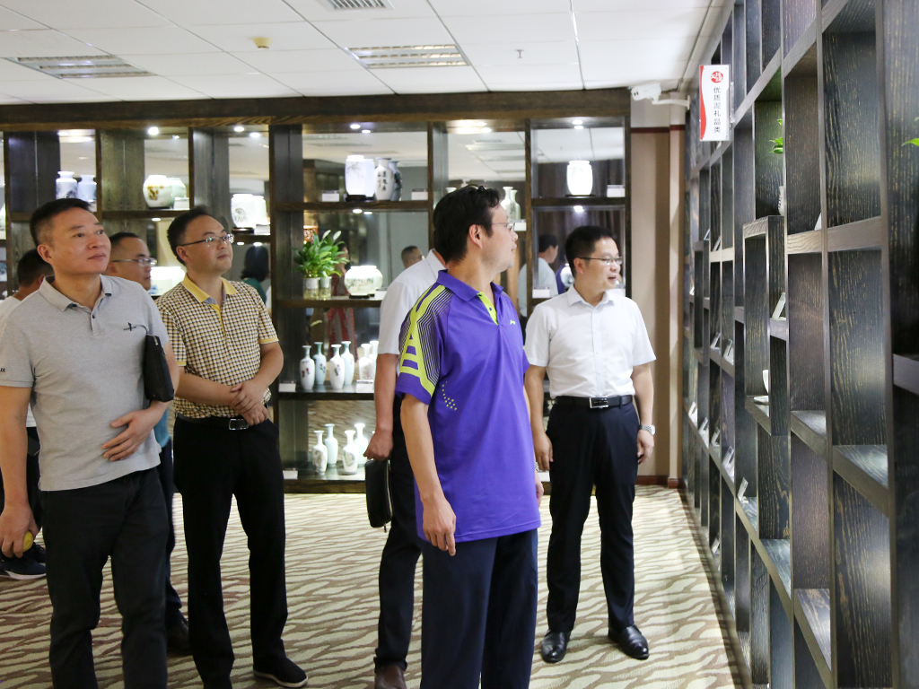 評(píng)審會(huì)議休息期間,鶴城區(qū)考評(píng)小組的成員們還到大球泥瓷藝的文化展示廳和產(chǎn)品展示廳參觀指導(dǎo)。