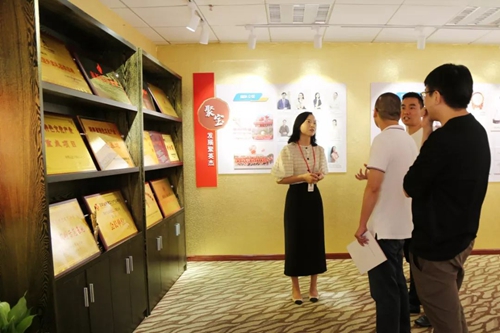 湯總一行首先參觀了公司企業(yè)文化展廳和產(chǎn)品展示廳,營銷總監(jiān)徐亞美作了全程講解。湯總一行對(duì)大球泥原料這一核心競(jìng)爭(zhēng)力表現(xiàn)出濃厚的興趣,認(rèn)為大球泥精典作品出彩,文化價(jià)值和藝術(shù)價(jià)值非凡,單論白色瓷質(zhì)的高貴瑩潤(rùn),就已是精品,其工藝水平更是高超。
