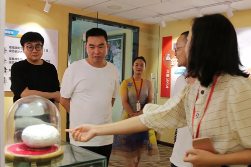 8月8日上午,湖南國際頻道常務(wù)副總監(jiān)(主持工作)湯集安、副總監(jiān)劉輝、總監(jiān)助理任帥等一行到大球泥瓷藝考察指導(dǎo),董事長(zhǎng)滕召華、常務(wù)副總張萍等陪同考察座談。