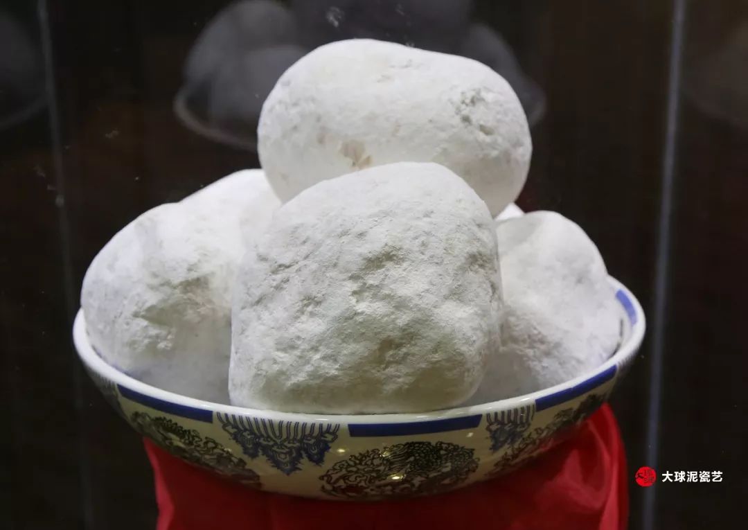 大球泥是偉晶巖風(fēng)化物,雪白球狀體,形似恐龍蛋;含鋁量極高,含鐵量極少,是制作陶瓷的稀缺原料。至今世界只發(fā)現(xiàn)兩個礦源,一個是英國,二戰(zhàn)時枯竭;一個是湖南雪峰山,上世紀(jì)八十年代枯竭,F(xiàn)存于世就一百多 噸,絕大部分被大球泥瓷藝公司搶救性保護(hù)收藏,并審慎研究、開發(fā)、利用。
