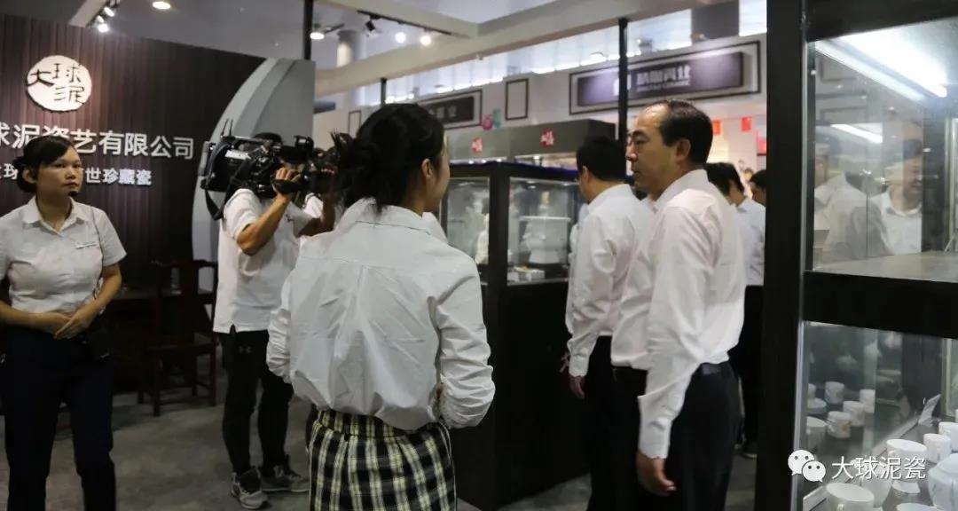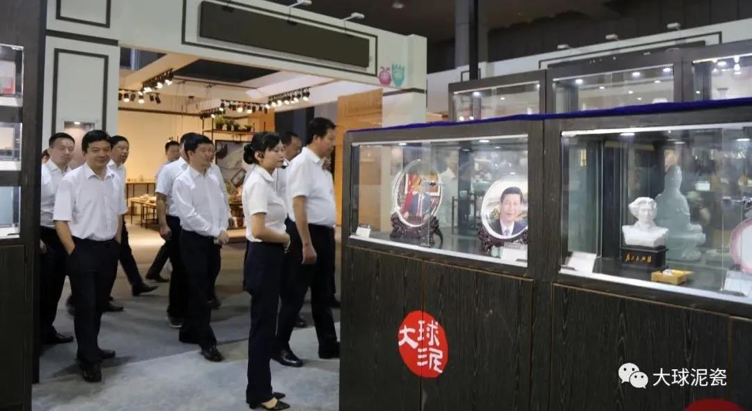 是日下午,考察團(tuán)到達(dá)醴陵國(guó)際會(huì)展中心,在醴陵市委書記胡湘之引領(lǐng)下參觀了3號(hào)館里的大球泥瓷展示廳,觀賞了大球泥瓷的百余件珍品。其中《和平》套具、《紅太陽(yáng)》偉人浮雕、《為人民服務(wù)》等作品,受到了領(lǐng)導(dǎo)們的高度贊賞。