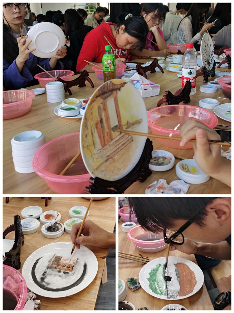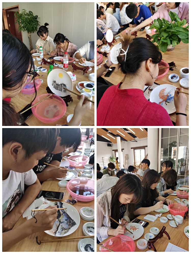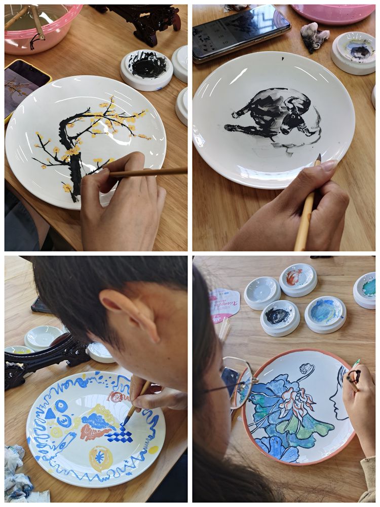 今天一大早,同學(xué)們滿心歡喜來到大球泥瓷藝術(shù)館,在國家正高級工藝美術(shù)師滕召華的指導(dǎo)下,大家統(tǒng)一挑選了一款白色瓷盤,一百多人瞬間沉靜,只聞瓷聲筆動,畫下心中所念所想,作為這個中秋的一份特別禮物。