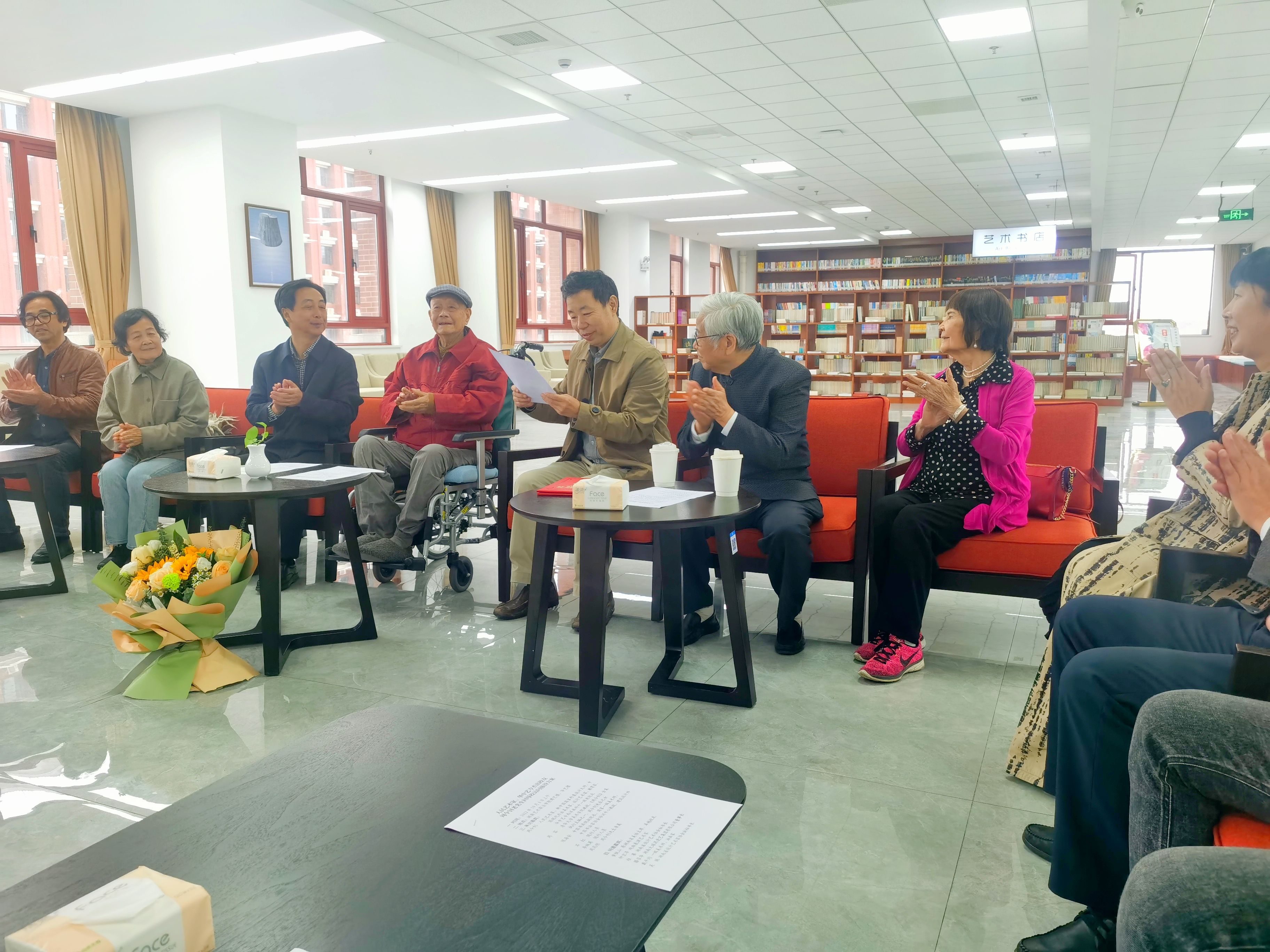藝術(shù)職業(yè)學(xué)院院長張勇主持座談會,老藝術(shù)家黃鐵山、鐘宜淳等校友回顧了學(xué)習(xí)、生活、工作情況。周令釗老先生會上致辭,表示“我們搞美術(shù)的,對美的追求是沒有盡頭的,‘美上加美’應(yīng)當(dāng)是我們永恒的追求”。隨后學(xué)院黨委書記王章華與院長張勇為周令釗先生頒發(fā)“終身榮譽(yù)教授”證書,并將具有重要紀(jì)念意義的大球泥瓷作品《毛澤東主席浮雕瓷像》贈予周老先生收藏。