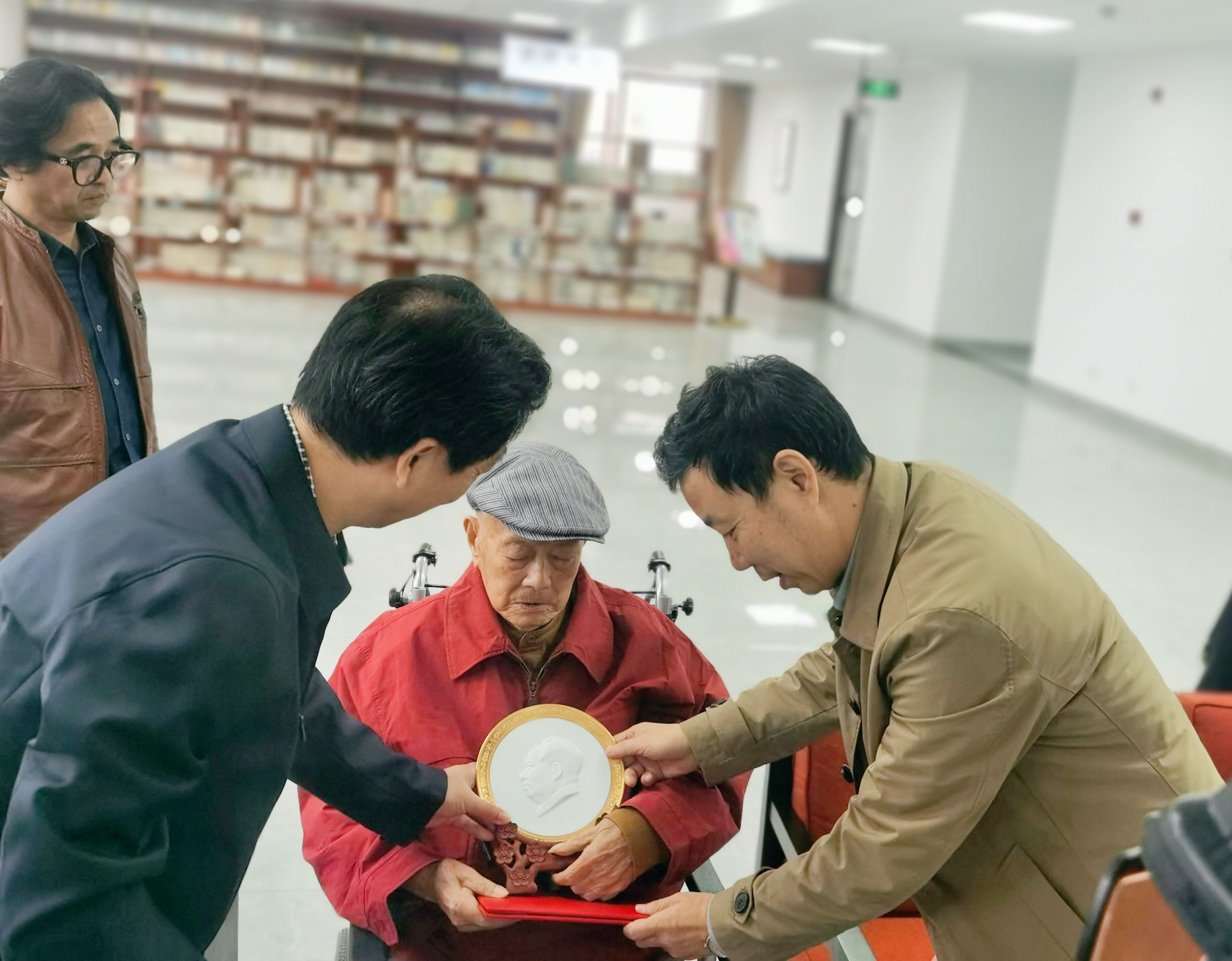 贈予周老先生的《毛澤東主席浮雕瓷像》是大球泥瓷藝的精品力作,采用我國著名雕塑家張松鶴先生創(chuàng)作的毛澤東主席浮雕像而再創(chuàng)作。張松鶴先生與周令釗先生都是新中國同一時(shí)期的著名藝術(shù)家,人民英雄紀(jì)念碑游擊隊(duì)浮雕、毛主席紀(jì)念堂漢白玉雕像、湖南大學(xué)東方紅廣場雕像等皆為其杰作。