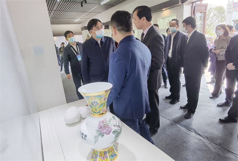 國家文化和旅游部部長胡和平一行到湘瓷館巡展,董事長滕召華介紹了湖南陶瓷的發(fā)展歷程及獨(dú)有特色,講解了“毛瓷”制作技術(shù)及稀缺大球泥原料,匯報了非遺傳承及融合創(chuàng)新取得成就。胡部長認(rèn)為釉下五彩瓷色彩清新、畫面豐富,贊譽(yù)大球泥瓷設(shè)計新穎、白潤通透,指示湖南陶瓷要傳承融合、守正創(chuàng)新。