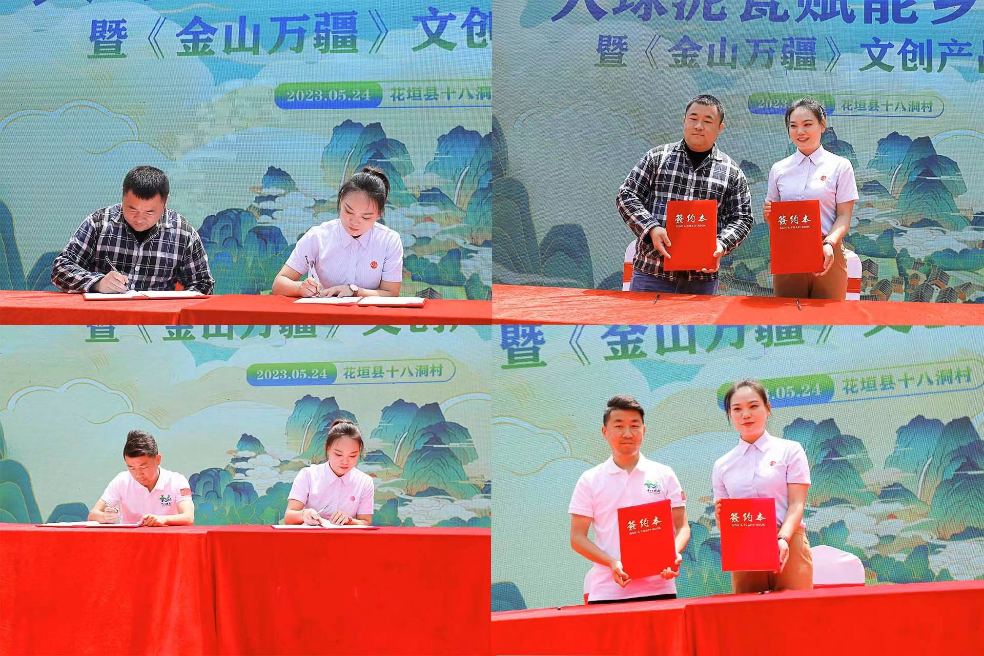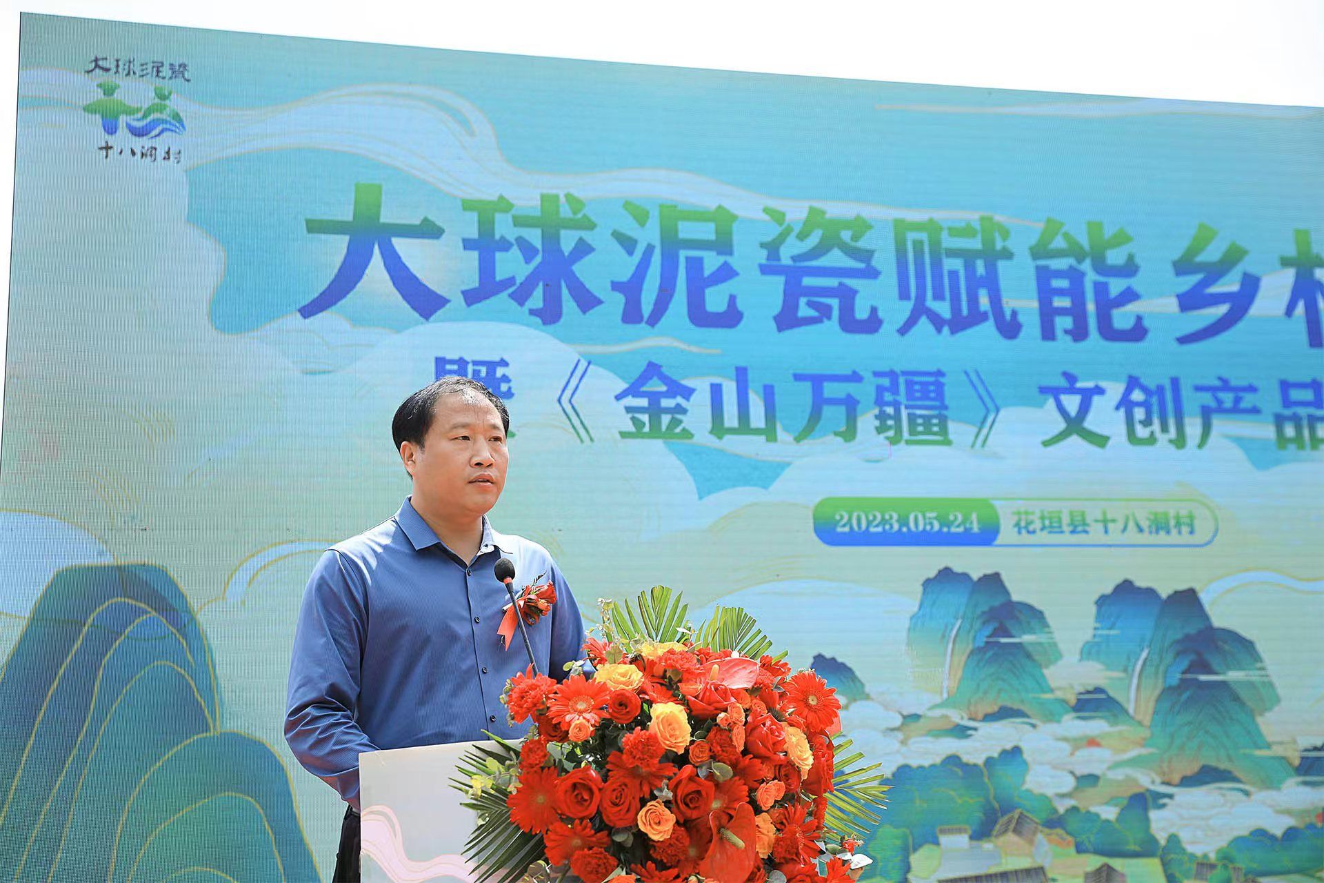 2023 年 5 月 24 日上午,大球泥瓷賦能鄉(xiāng)村振興暨《金山萬(wàn)疆》文創(chuàng)新品發(fā)布會(huì)在花垣縣十八洞村村部舉行。省文旅廳三級(jí)調(diào)研員劉彬、長(zhǎng)沙市委宣傳部四級(jí)調(diào)研員何小紅、湘西州文旅廣局副局長(zhǎng)呂冠軍、花垣縣委常委、宣傳部長(zhǎng)滕召帆、十八洞村委會(huì)副主任、經(jīng)濟(jì)聯(lián)合社理事長(zhǎng)龍書優(yōu)等出席。