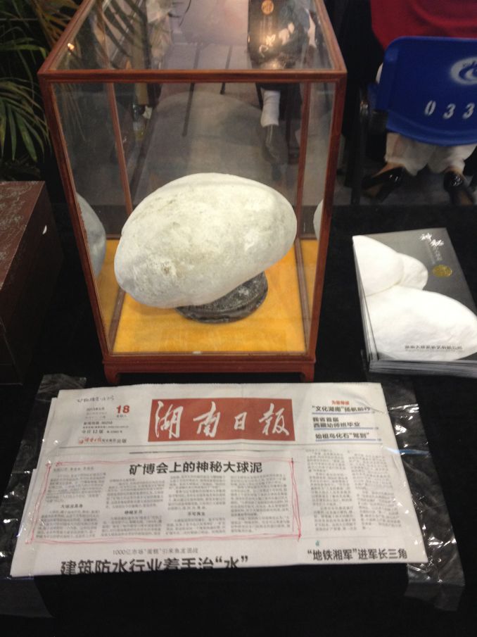 大球泥是偉晶巖風(fēng)化物,雪白球狀體,形似恐龍蛋;含鋁量極高,含鐵量極少,是制作陶瓷的稀缺原料。至今世界只發(fā)現(xiàn)兩個(gè)礦源,一個(gè)是英國,二戰(zhàn)時(shí)枯竭;一個(gè)是湖南雪峰山,上世紀(jì)八十年代枯竭,F(xiàn)存于世就一百多 噸,絕大部分被大球泥瓷藝公司搶救性保護(hù)收藏,并審慎研究、開發(fā)、利用。